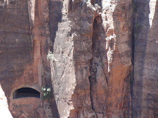 It is somewhat hard to see, but if you look closely in the lower left hand corner of the picture you will see the window of the tunnel. I wanted to capture just how far down the cliff the tunnel is located.